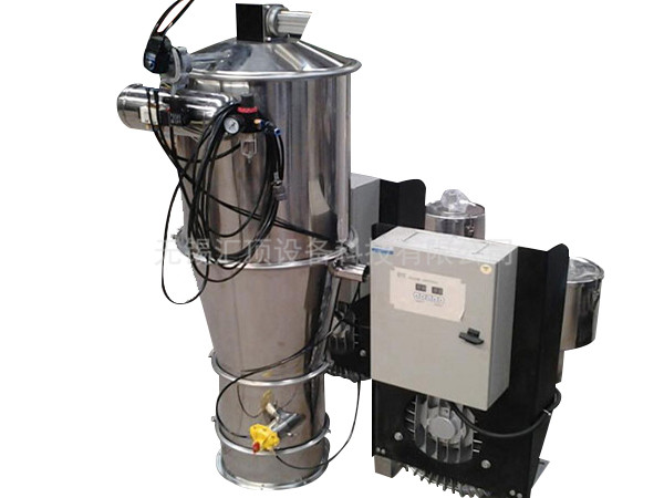 真空上料機(jī)是用旋渦氣泵抽氣,使吸料嘴進(jìn)口處及整個(gè)系統(tǒng)處于一定的真空狀態(tài),粉粒料隨同外界空氣被吸入料嘴,形成料氣流,經(jīng)過吸料管到達(dá)料斗,在料斗中進(jìn)行氣、料分離。分離后的物料進(jìn)入受料設(shè)備。送料——放料是通過氣動(dòng)三通閥不斷地開、閉來完成的,而氣動(dòng)三通閥的開閉是由控制中心來控制的。