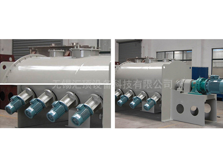 犁刀組軸:犁刀根據容積大小安排犁刀數據,安裝在主軸上,在筒體內作圓周湍動流混合物料。